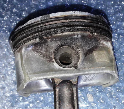 N52b25 low compression engine piston. (This piston was not affected by the oil burning issue as the oil drain holes were correctly positioned).